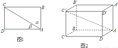 已知命題:平面上一矩形ABCD的對(duì)角線(xiàn)AC與邊AB、AD所成的角分別為α、β(如圖1),則cos
