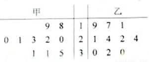 甲、乙兩人在10天中每天加工零件的個(gè)數(shù)用莖葉圖表示如下圖,中間一列的數(shù)字表示零件個(gè)數(shù)的十位數(shù),兩邊的數(shù)字表示零件個(gè)數(shù)的個(gè)位數(shù),則這10天甲、乙兩人日加工零件的平均數(shù)分別為