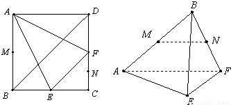 在邊長(zhǎng)為6cm的正方形ABCD中,E、F分別為BC、CD的中點(diǎn),M、N分別為AB、CF的中點(diǎn),現(xiàn)沿AE、AF、EF折疊,使B、C、D三點(diǎn)重合,構(gòu)成一個(gè)三棱錐.