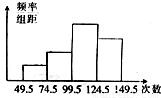 為了了解學(xué)生的體能情況,現(xiàn)抽取了某校一個(gè)年級(jí)的部分學(xué)生進(jìn)行一分鐘跳繩次數(shù)的測(cè)試,將數(shù)據(jù)整理后,畫出了如圖所示的頻率分布直方圖.已知圖中從左到右三個(gè)小組的頻率分別為0.1,0.2,0.4,第一小組的頻數(shù)為5,那么第四小組的頻數(shù)等于