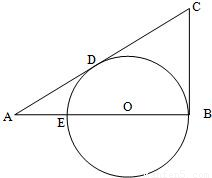 如圖,在△ABC中,已知∠ABC=90°,AB上一點(diǎn)E,以BE為直徑的⊙O恰與AC相切于點(diǎn)D,若AE=2cm,