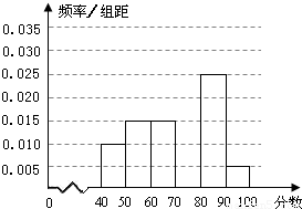 (Ⅲ)若從60名學(xué)生中隨機(jī)抽取2人,抽到的學(xué)生成績在[40,70)記0分,在[70,100]記1分,用X表示抽取結(jié)束后的總記分,求X的分布列和數(shù)學(xué)期望.