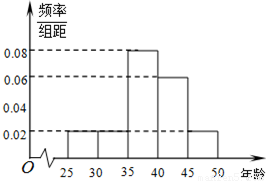 | 區(qū)間 | [25,30) | [30,35) | [35,40) | [40,45) | [45,50] |