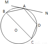(幾何證明選講選做題)四邊形ABCD內(nèi)接于⊙O,BC是直徑,MN切⊙O于A,∠MAB=25
