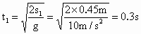 一跳水運(yùn)動(dòng)員從離水面10m高的平臺(tái)上向上躍起,舉雙臂直體離開臺(tái)面.此時(shí)其重心位于從手到腳全長的中點(diǎn).躍起后重心升高0.45m達(dá)到最高點(diǎn),落水時(shí)身體豎直,手先入水.(在此過程中運(yùn)動(dòng)員水平方向的運(yùn)動(dòng)忽略不計(jì))從離開跳臺(tái)到手觸水面,他可用于完成空中動(dòng)作的時(shí)間是_____s.(計(jì)算時(shí),可以把運(yùn)動(dòng)員看作全部質(zhì)量集中在重心的一個(gè)質(zhì)點(diǎn)上.g取