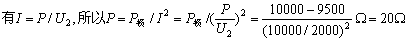 (3)設(shè)降壓變壓器原線圈上電壓為U3 U3=U2-IR=(2000-5×20)V=1900V 所以降壓變壓器原、副線圈匝數(shù)比為