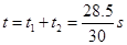 之間時(shí)間間隔為1.0s,標(biāo)尺記錄有30小格,故每小格為