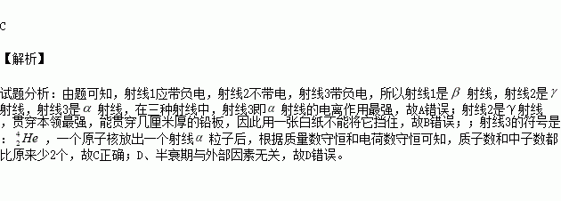C.一個原子核放出一個射線3的粒子后,質(zhì)子數(shù)和中子數(shù)都比原來少2個