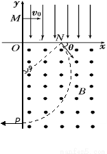 在N點(diǎn)速度v與x軸正方向成θ=60°角射出