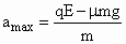 (1)金屬環(huán)在電場力和摩擦力的共同作用下由靜止開始做加速運動.隨著速度的增大,洛倫茲力從零逐漸增大,金屬環(huán)所受的摩擦力逐漸變大,合外力減。越饘侪h(huán)將做一個加速度逐漸減小的加速運動,達到最大速度vmax后做勻速運動. (2)開始時金屬環(huán)速度為零,所受的摩擦力為最小,此時金屬環(huán)所受的合外力最大,根據(jù)牛頓第二定律 (3)當摩擦力 |