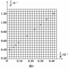 ②實(shí)驗(yàn)時,改變電阻箱R的值,記錄下電壓表的示數(shù)U,得到如下表所示的幾組R、U的數(shù)據(jù),并根據(jù)實(shí)驗(yàn)數(shù)據(jù)在圖3中描出了對應(yīng)的點(diǎn),請補(bǔ)充畫出-圖線