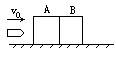 如圖所示,光滑的水平面上,質(zhì)量mA=mB=0.2kg的兩木塊靠在一起,質(zhì)量m=0.02kg的子彈以v0=700m/s的速度水平射入木塊A,在子彈射透木塊B后,速度大小減小為v子=100m/s,已知子彈穿透A、B兩木塊克服摩擦阻力做的功相等,求(1)子彈穿過A時的速度.(2)木塊A、B最后的速度多大?