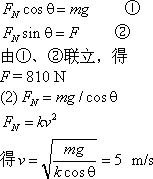 Fx垂直于板面,大小為kv2,其中v為滑板速率(水可視為靜止).某次運(yùn)動中,在水平牽引力作用下,當(dāng)滑板和水面的夾角(1)水平牽引力的大。