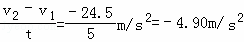 A. 2.45m/s2 B. ﹣2.5m/s2 C. 4.90m/s2 D. ﹣4.90m/s2