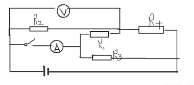 (2)并聯(lián)后與串聯(lián),所以的電壓等于路端電壓減去的電壓,因此根據(jù)歐姆定律有(4分)