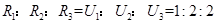 如圖電路中三只電阻的阻值之比為