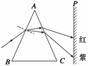 經(jīng)過三棱鏡后,在屏P上可得到彩色光帶,當(dāng)入射角逐漸減小到零的過程中,若屏上的