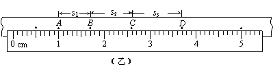 (1)在平衡小車與桌面之間摩擦力的過程中,打出了一條紙帶。從比較清晰的點起,每5個點取一個計數(shù)點,用刻度尺測量計數(shù)點間的距離如圖(乙)所示。已知打點計時器所用電源的頻率為50Hz。求: