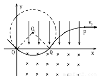 假設(shè)粒子在O點(diǎn)時(shí)的速度大小為v,OQ段為圓周,QP段為拋物線。