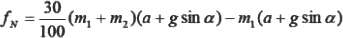 如圖所示,一輛汽車A拉著裝有集裝箱的拖車B,以速度v1=30 m/s進(jìn)入向下傾斜的直車道。車道每100 m下降2 m。為了使汽車速度在s=200 m的距離內(nèi)減到v2=10 m/s,駕駛員必須剎車。假定剎車時(shí)地面的摩擦阻力是恒力,且該力的70%作用于拖車B,30%作用于汽車A。已知A的質(zhì)量m1=2000 kg,B的質(zhì)量m2=6000 kg。求汽車與拖車的連接處沿運(yùn)動(dòng)方向的相互作用力。取重力加速度g=10 m/s2。