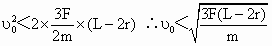 在光滑的水平面上軌道上有兩個半徑都是r的小球A和B,質(zhì)量分別為m和2m,當(dāng)兩球心間的距離大于L(L比2r大得多)時,兩球間無相互作用力;當(dāng)兩球心間的距離等于或小于L時兩球間有恒定斥力F設(shè)A球從較遠(yuǎn)處以初速υ0正對靜止的B球開始運(yùn)動(如圖所示),欲使兩球不發(fā)生接觸,υ0必須滿足什么條件?