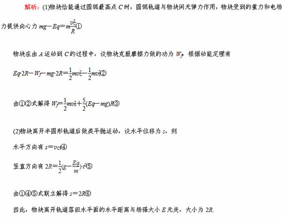 (2)證明物塊離開軌道落回水平面過程的水平距離與場強(qiáng)大小E無關(guān),且為一常量.