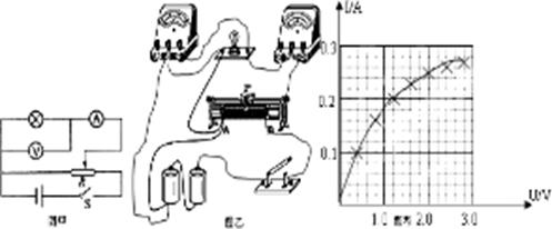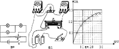 (3)實(shí)驗(yàn)中測(cè)得有關(guān)數(shù)據(jù)如下表:根據(jù)表中的實(shí)驗(yàn)數(shù)據(jù),在圖丙中畫出小燈泡的I—U特性曲線(用橫坐標(biāo)表示U)。(4分)