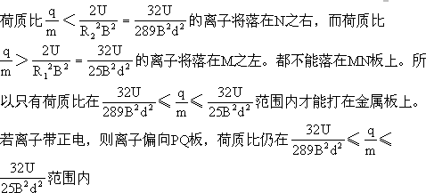 (q,m分別為離子的帶電量與質(zhì)量),應(yīng)在什么范圍內(nèi),離子才能打到金屬板上?