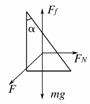 如圖所示,質(zhì)量為m、橫截面為直角三角形的物塊ABC,∠ABC=α,AB邊靠在豎直墻面上,F是垂直于斜面BC的推力,現(xiàn)物塊靜止不動(dòng),則摩擦力的大小為________.