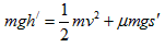 (2)若滑塊從h/=5m處下滑到將要與小球碰撞時速度為u,同理有