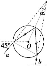 的透明球表面,入射角為45°,在球的內(nèi)壁經(jīng)過一次反射后,從球面射出的光線為b,則入射光線a與出射光線b之間的夾角α為( )