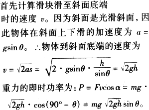 一質(zhì)量為m的物體,從傾角為θ的光滑斜面頂端由靜止下滑,下滑時離地面的高度為h,如圖所示,當(dāng)物體滑到斜面底端時,重力的即時功率為