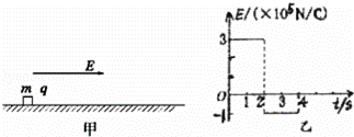 圖甲所示,在真空中足夠大的絕緣水平地面上,一個(gè)質(zhì)量為m=0.2kg,帶電荷量為q=+2.0×10﹣6C的小物塊處于靜止?fàn)顟B(tài),小物塊與地面間的摩擦因數(shù)μ=0.1,從t=0時(shí)該開(kāi)始,空間上加一個(gè)如圖乙所示的電場(chǎng).(取水平向右的方向?yàn)檎较,g取10m/s2)求: