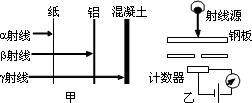 如圖甲是α、β、γ三種射線穿透能力的示意圖,圖乙是工業(yè)上利用射線的穿透性來檢查金屬內部的傷痕的示意圖,則圖乙中的檢查利用的射線是