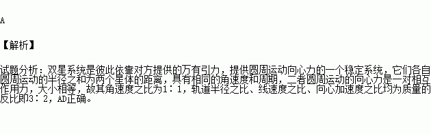 D 甲、乙兩恒星的向心加速度之比為2∶3