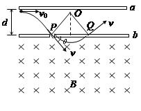 如圖所示,水平放置的兩塊長直平行金屬板a、b相距d =0.10m,a、b間的電場強(qiáng)度為E =3.0×103 N/C,b板下方整個(gè)空間存在著磁感應(yīng)強(qiáng)度大小為B =0.3T、方向垂直紙面向里的勻強(qiáng)磁場.今有一質(zhì)量為m =2.4×10-13 kg、電荷量為q =4.0×10-8 C的帶正電的粒子(不計(jì)重力),從貼近a板的左端以v0 =1.0×104 m/s的初速度從A點(diǎn)水平射入勻強(qiáng)電場,剛好從狹縫P處穿過b板而垂直進(jìn)入勻強(qiáng)磁場,最后粒子回到b板的Q處(圖中未畫出).