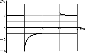 角放置,上端跨接定值電阻R,一長(zhǎng)也為L、電阻不計(jì)的金屬棒擱在導(dǎo)軌上,在導(dǎo)軌所在處有三個(gè)勻強(qiáng)磁場(chǎng)區(qū)和一個(gè)無(wú)磁場(chǎng)區(qū),磁場(chǎng)邊界均平行于金屬棒,磁場(chǎng)寬均為L,磁場(chǎng)方向如圖且均垂直于導(dǎo)軌平面,磁感應(yīng)強(qiáng)度B2=2B1,無(wú)磁場(chǎng)區(qū)寬也為L,金屬棒從導(dǎo)軌上方距最上方的磁場(chǎng)的上邊界L處?kù)o止起下滑,進(jìn)入最上方磁場(chǎng)時(shí)恰好做勻速運(yùn)動(dòng),且每次到達(dá)一個(gè)磁場(chǎng)的下邊界前都已達(dá)到勻速運(yùn)動(dòng),圖中已畫出金屬棒穿過(guò)第一個(gè)磁場(chǎng)區(qū)過(guò)程中的電流(以a→b為正方向)隨下滑距離x變化的圖像,請(qǐng)畫出金屬棒穿過(guò)后兩個(gè)磁場(chǎng)區(qū)過(guò)程中的電流隨下滑距離x變化的圖像