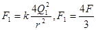 大小相同的金屬小球,所帶電量的值分別為Q1、Q2,且Q2=3Q1,把Q1、Q2放在相距較遠(yuǎn)的兩點(diǎn),它們間作用力的大小為F,若使兩球相接觸后再分開(kāi)放回原位置,求它們間作用力的大小。