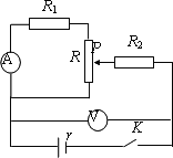 如圖所示電路,電源內(nèi)阻為r,定值電阻R1的阻值小于變阻器R的總阻值,閉合K,當滑片P在變阻器的中點時,電壓表