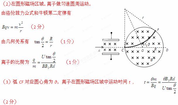 (3)離子在圓形磁場區(qū)域中運動時間t。