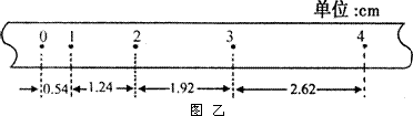 (2)在做驗(yàn)證牛頓第二定律的實(shí)驗(yàn)中,得到的紙帶如下圖所示.已知相鄰計(jì)數(shù)點(diǎn)間的時(shí)間間隔為0.1 s,由此可以算出小車的加速度=________m/s2.打下計(jì)數(shù)點(diǎn)3時(shí),小車的速度v3=__________