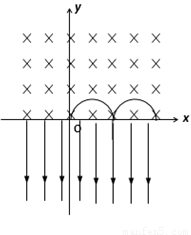 如圖所示,在x軸上方有垂直于xy平面向里的勻強磁場,磁感應強度為B;在x軸下方有沿y軸負方向的勻強電場,場強為E。一質(zhì)量為m,電荷量為-q的粒子從坐標原點O沿著y軸正方向射出。射出之后,第三次到達x軸時,它與點O的距離為L。