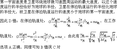 A.衛(wèi)星在停泊軌道和工作軌道運(yùn)行的速度之比為![]()
