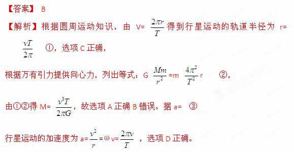 (2013北京市東城區(qū)聯(lián)考)一行星繞恒星做圓周運(yùn)動(dòng),由天文觀測(cè)可得,其運(yùn)動(dòng)周期為T(mén),速度為v,引力常量為G,則下列說(shuō)法錯(cuò)誤的是