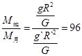 | D.月球與地球質(zhì)量之比為1/96 |