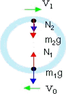 分析與解:如圖所示,A球運(yùn)動(dòng)到最低點(diǎn)時(shí)速度為V0,A球受到向下重力mg和細(xì)管向上彈力N1的作用,其合力提供向心力.那么,N1-m1 g=m1