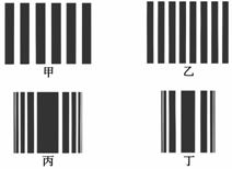 如圖所示,甲、乙、丙、丁四個圖是不同的單色光形成的雙縫干涉或單縫衍射圖樣。分析各圖樣的特點可以得出的正確結(jié)論是( )