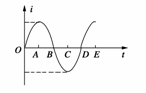 圖為LC振蕩電路中振蕩電流隨時間變化的圖象,由圖可知,在OA時間內(nèi)________能轉(zhuǎn)化為______能,在AB時間內(nèi)電容器處于________(填“充電”或“放電”)過程,在時刻C,電容器帶電荷量________(填“為零”或“最大”)。