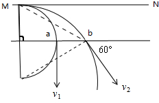 如圖所示,兩電子沿MN方向從M點射入兩平行平面間的勻強磁場中,它們分別以v1、v2的速率射出磁場,則v1∶v2和通過勻強磁場所用時間之比t1∶t2分別為: