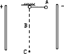 (2)若小球擺至B點(diǎn)時絲線突然斷裂,以后小球能經(jīng)過B點(diǎn)正下方的C點(diǎn)(C點(diǎn)在電場內(nèi),小球不會與正電荷極板相碰,不計空氣阻力),則BC相距多遠(yuǎn)?(g=10 m/s2)